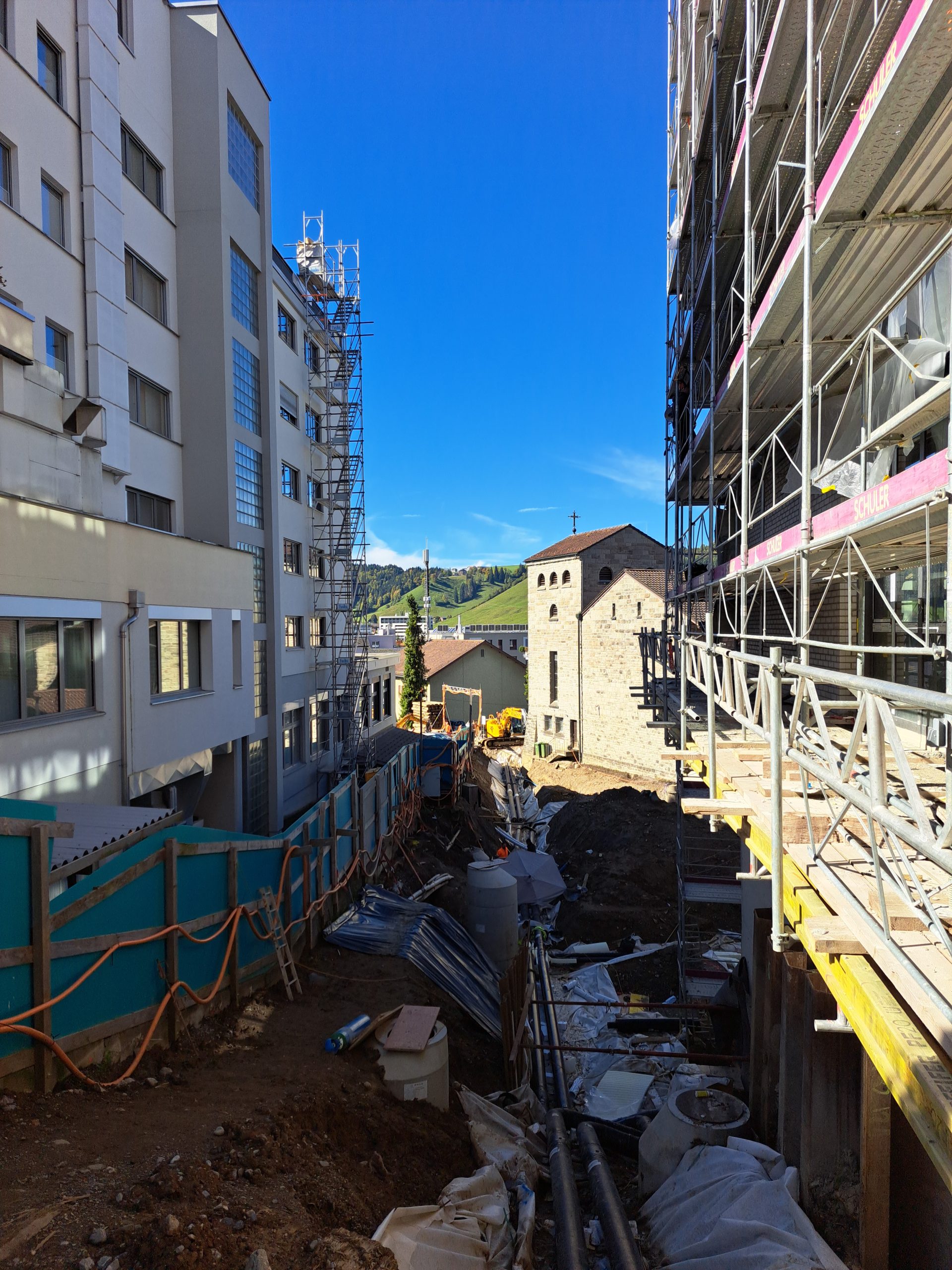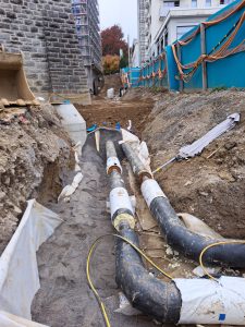 Der Leitungsbau im Bereich des Einsiedlerhofes ist im Endspurt. Die Leitungen sind bis über die Benzigerstrasse fertig fertiggeschweisst.